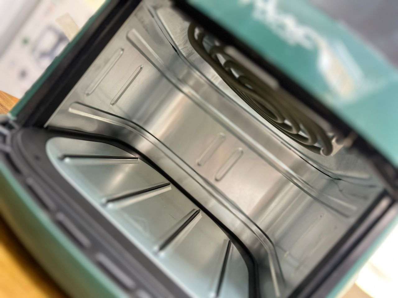 فضای داخلی استفاده شده در این سرخ کن از جنس ورق گالوانیزه خودرویی با ماندگاری بالا می باشد که تا ۳۰۰ درجه سانتی گراد تحمل دمایی داشته و عایق مناسبی جهت کنترل دمای داخل مخزن سرخ کن خواهد بود.