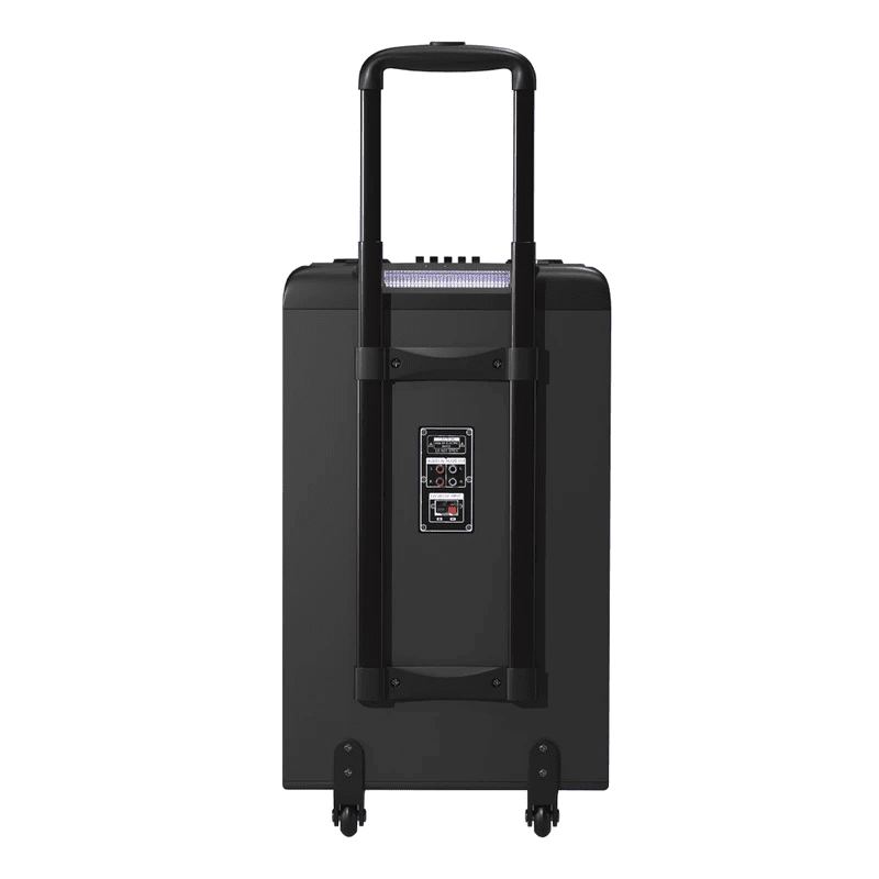 بدنه مقاوم، طراحی چمدانی با دستگیره جمعشونده و چرخهای روان باعث میشود بدون زحمت اسپیکر را حمل کنید. نمایشگر دیجیتال و نورپردازی RGB جذاب، حس حرفهای و مدرن به محصول میدهد و محیط مهمانی را کاملاً زنده میکند.